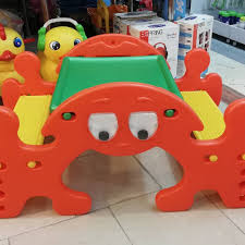 میز و نیمکت و الاکلنگ چهار نفره ، از جنس پلی اتيلن و دو كاره بوده و با يک چرخش ساده تبديل به يک الاكلنگ چهار نفره زيبا می شود. این محصول هم برای محیط داخل منزل و مهدکودک و هم فضای بیرونی کاربرد دارد. این الاکلنگ برای کودکان بالای 2 سال مناسب است.