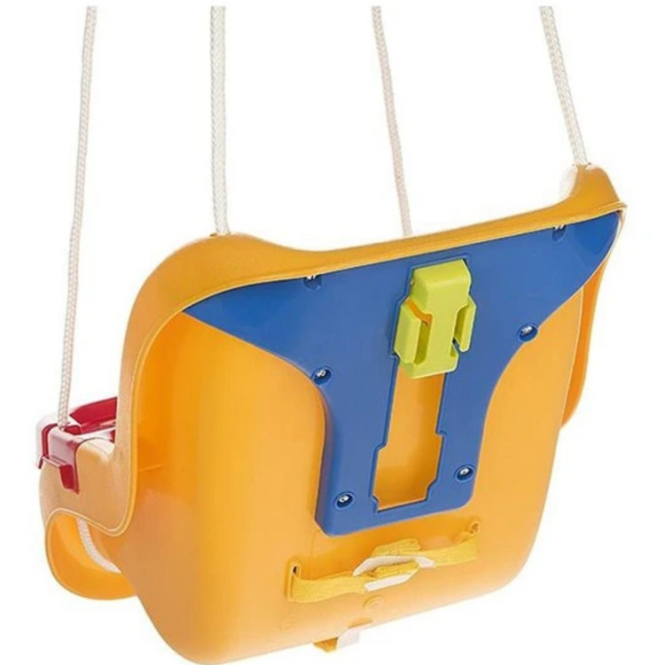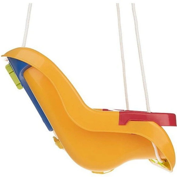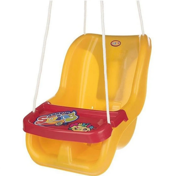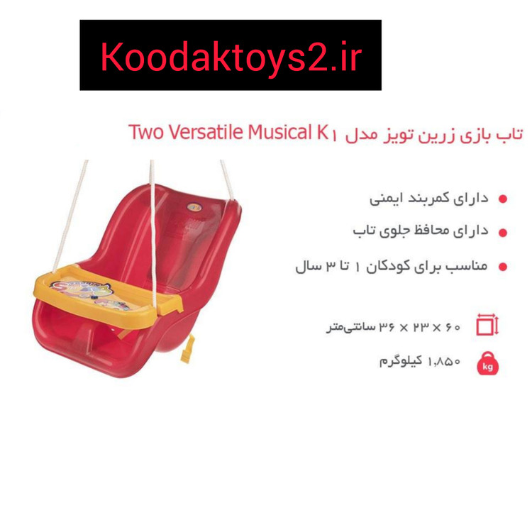 این تاب با قابلیت پخش موزیک و رنگبندی خاصش میتواند جذابیت ویژهای برای کودک داشته باشد. این مدل با توجه به طراحیاش، برای کودکان یک تا سهساله در نظر گرفته شده است. این تاب علاوهبر کمربند دارای محافظ است تا کودک در امنیت کامل به بازی بپردازد. گیرههایی فلزی هم در بستهبندی آن ارائه شده است تا بهراحتی آویزان شود.