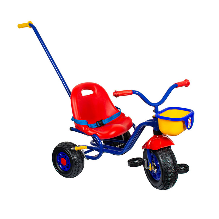 این سه چرخه دارای اسکلت فلزی بسیار مقاوم و قطعات پلاستیکی بسیار باکیفیت میباشد و دارای استاندارد ایران است که یک سبد پلاستیکی در جلوی فرمان و یک سبد بزرگ در پشت و زیر صندلی میباشد این سه چرخه بهترین هدیه برای کودکان میباشد تا بتوانند لذت سواری و پدال زدن را به تنهایی تجربه کنند و عصایی که در پشت سه چرخه نصب میشود کمک می کند تا والدین کودک و سه چرخه را کاملا در اختیار داشته باشند