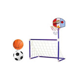 ست تیر دروازه فوتبال به همراه تخته و سبد بسکتبال محصولی مناسب برای سرگرم کردن فرزندان شما میباشد.با خرید این محصول با یک تیر دو نشان زدید و میتوانید هم بازی فوتبال و هم بسکتبال را با این محصول تجربه کنید.این محصول مناسب کودکان 3 سال به بالا طراحی شده است.کودکان با این محصول می توانند یک تیر دوازه کوچک در خانه داشته باشند و هر موقع شوق بازی به سرشان زد بازی کنند. این محصول یک اسباب بازی با کیفیت است که تمام شرایط را فراهم می کند تا فرزند شما در هر مکانی از جمله خانه،حیاط و … بتواند به همراه دوستانش به بازی و شادی بپردازد.یک دروازه فوتبال با ابعاد حدودی به طول 55cm و ارتفاع 39 سانتی متر با عمق 29cm خواهید داشت. برای بازی با بسکتبال میتوان توسط 2 میله و یک اتصالدهنده، سبد را به گوشه دروازه متصل کرد. در اینصورت ارتفاع سبد بسکتبال حدود 150cm خواهد شد. البته میتوانید با توجه به قد کودک ارتفاع این سبد را با کم کردن میله و یا استفاده نکردن از اتصالدهنده تغییر دهید. که اینگونه ارتفاع سبد در دو اندازه 120 و 110 قابل تغییر است. این بازی برای فضاهای باز و بسته طراحی شده و کودک میتواند به صورت تک نفره یا گروهی بازی کند