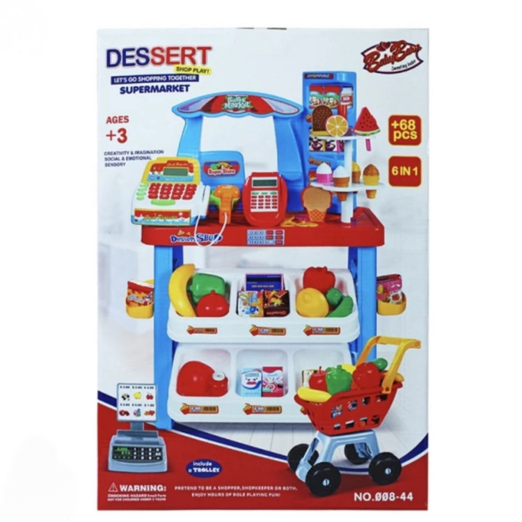 این محصول که از جنس پلاستیک تهیه شده است بسیار سبک است و در بر دارنده ی چند قطعه است که به راحتی سر هم می شود. شما می توانید با کمک ست اسباب بازی سوپر مارکت اموزش های لازم را در خصوص خرید، نحوه ی پرداخت پول به فروشنده، نحوه ی تعامل با خریدار و فروشنده و … را به کودک اموزش دهید.
