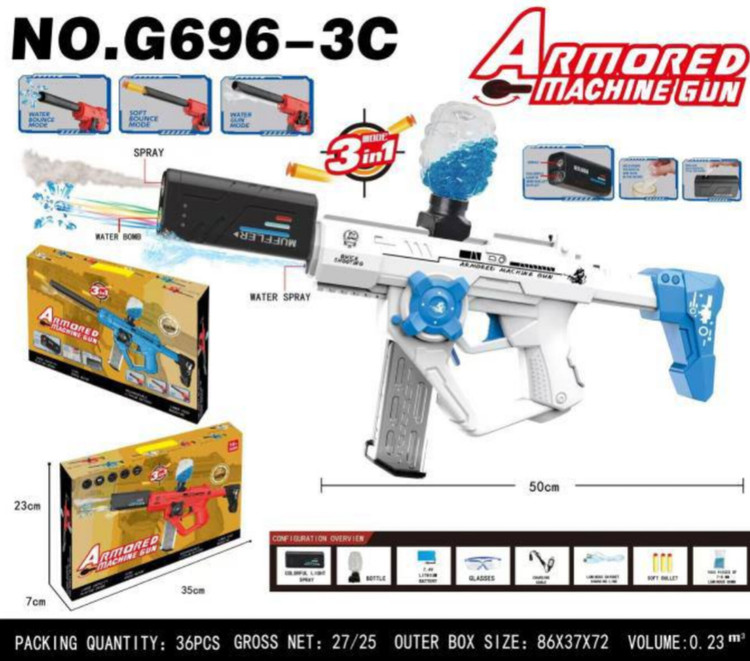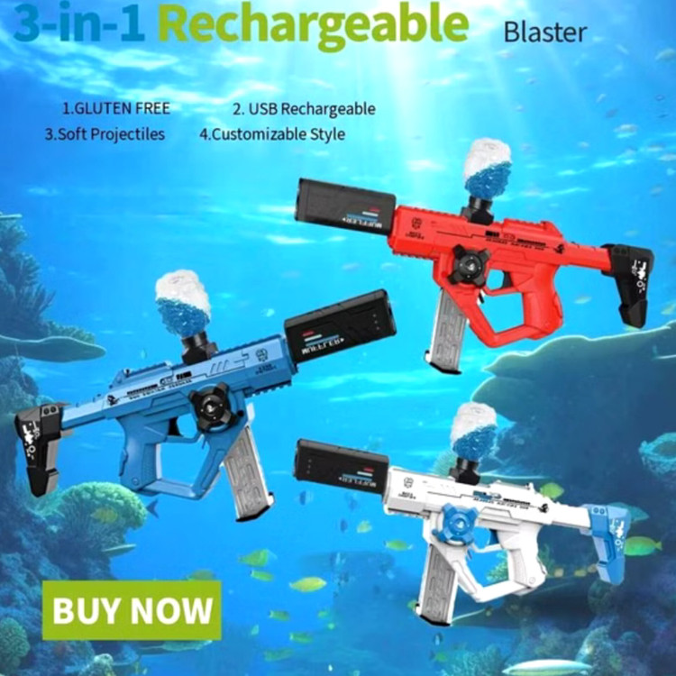 اسباب بازی تفنگ شارژی سه کاره (آبپاش،تیر ابری،تیر ژله ای)